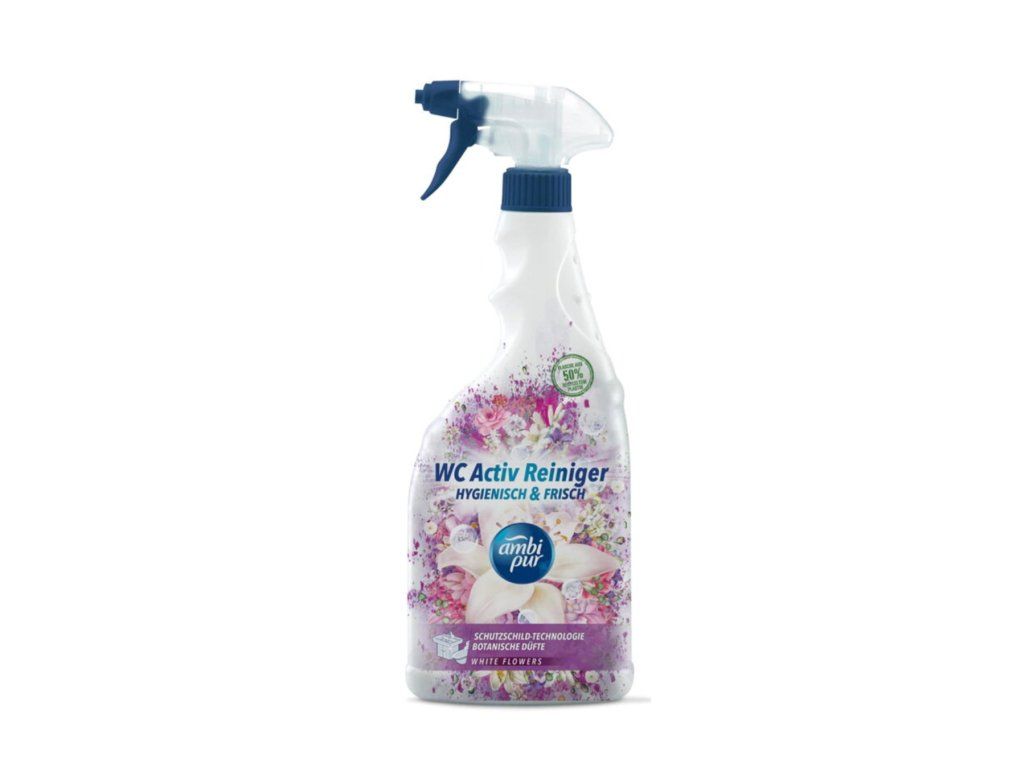 Ambi Pur WC Active sprej je výkonný čistiaci prostriedok, ktorý udržuje toaletu a kúpeľňu dokonale čistú a sviežu. Spoľahlivo odstraňuje vodný kameň, neutralizuje nepríjemné pachy a zanecháva jemnú vôňu bielych kvetov. Vďaka inovatívnej anti-odor technológii eliminuje zápach a zároveň osviežuje vzduch v kúpeľni.